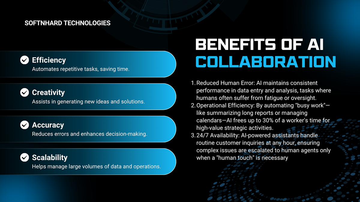 - Reduced Human Error: AI improves accuracy and precision in data-heavy tasks.